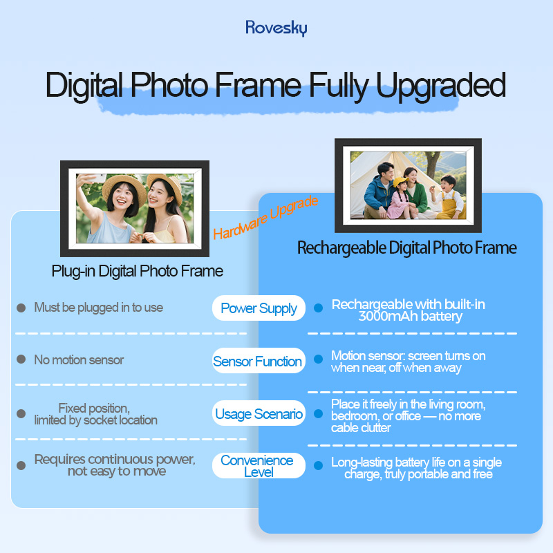 Use technology to bring us closer, letting beautiful memories be displayed anytime. The frame features gravity sensor functionality, allowing it to be used as either a tabletop ornament or a wall-mounted piece